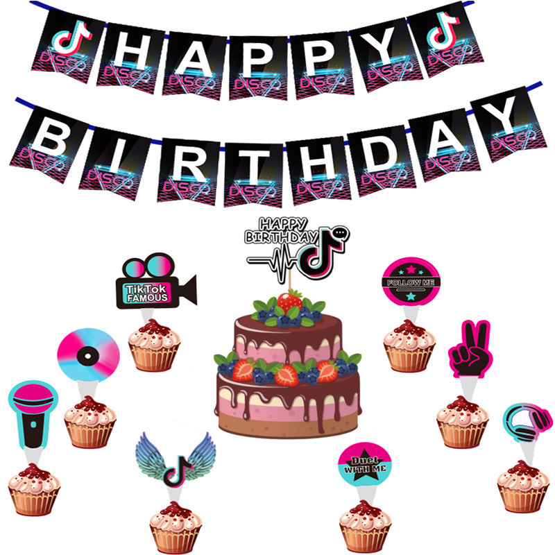 Tik Tok Party Party Supplies Happy Birthday Banners Cake Topper Cupcake Toppers Balloons Backdrop For Kids Boys Girls Adult Shopee Philippines - High quality tik tok birthday gifts and merchandise.