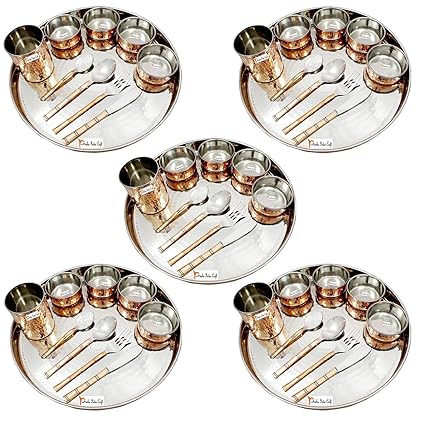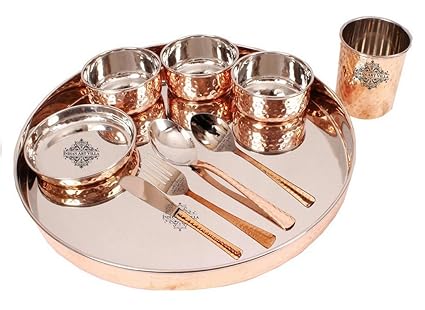 Indian Steel Thali Set : Use them in commercial designs under lifetime, perpetual & worldwide rights. Indian Steel Thali Set - Dinnerware set of 4 bowls, 1 water glass, 1 dinner plate thali, 1 dessert spoon, 1 fork,1 knife, 1 tea spoon.