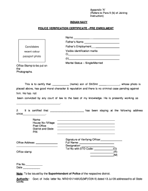 Indian Navy Police Verification Form Fill Online Printable Fillable Blank Pdffiller - Form popularity police verification form.